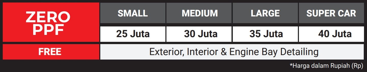 Price List Zero Film PPF